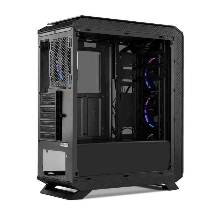 instalação de sistemas de refrigeração líquida (frontal: 240; 280 mm / traseiro: 120; 140 mm / topo: 240; 280 mm), instalação de placas gráficas com 370 mm de perfil (máx.), instalação de coolers CPU com 179 mm de altura (máx.)