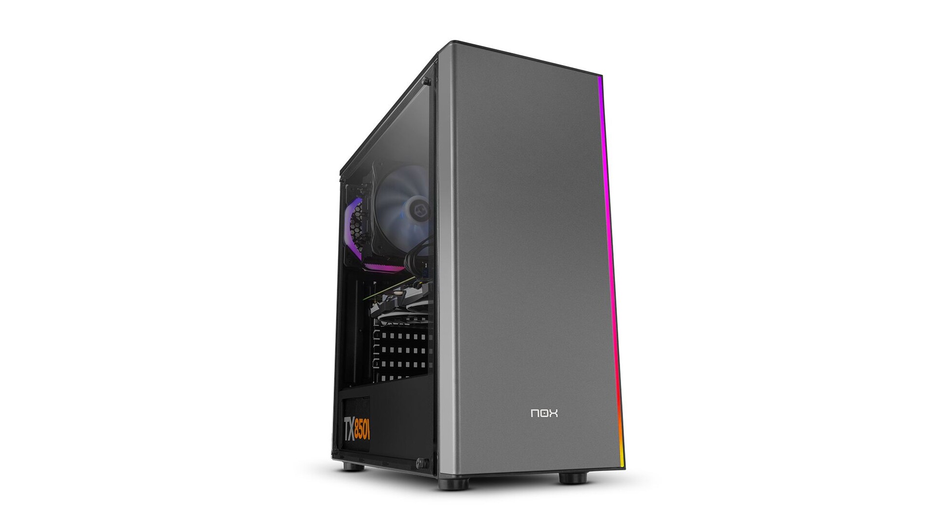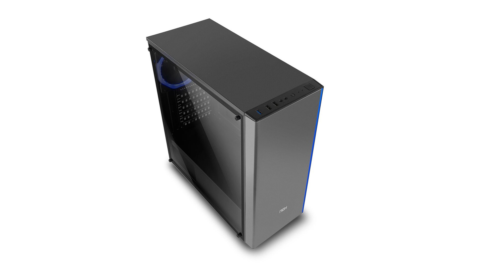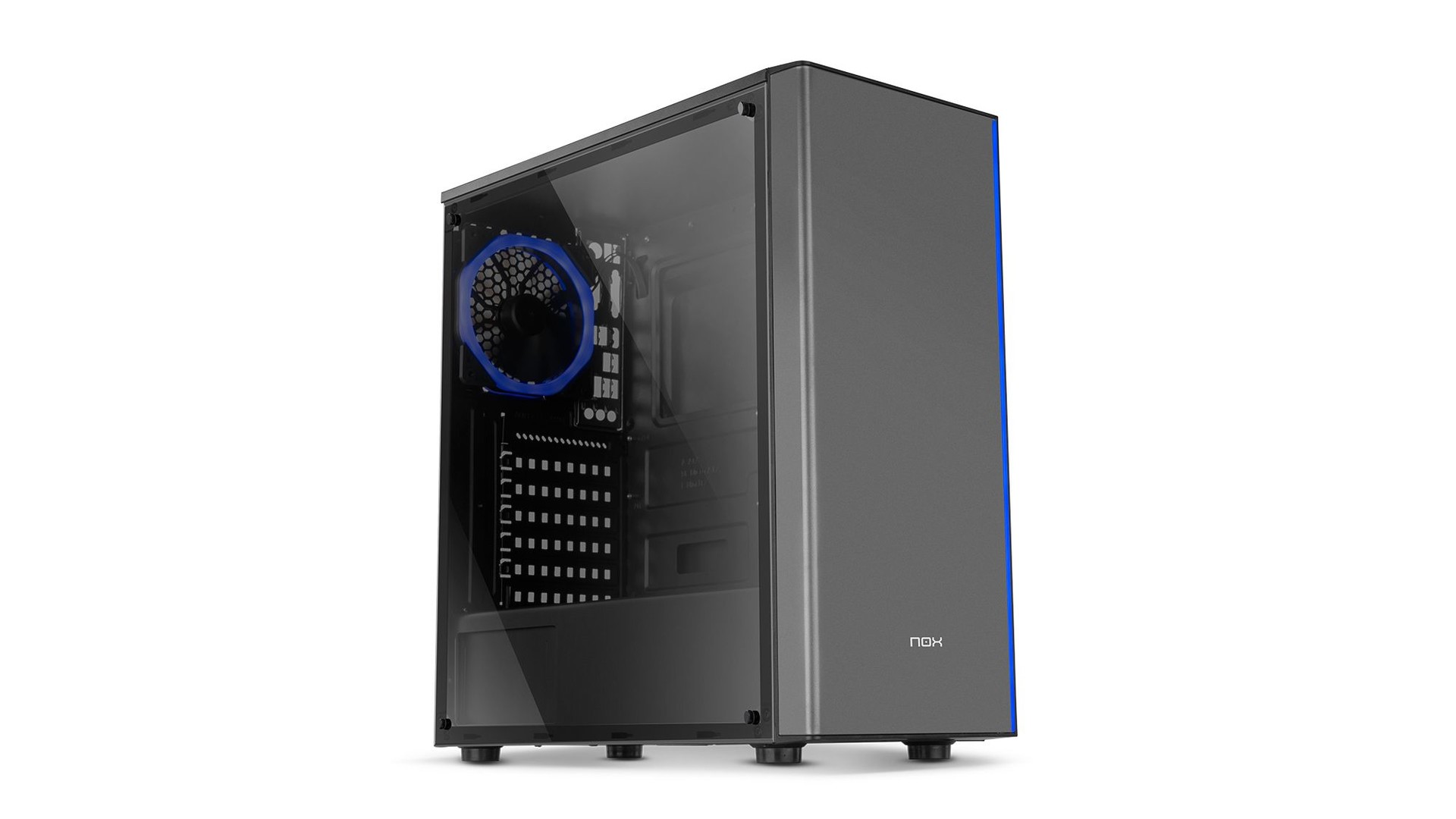 NOX Infinity Omega. Fator de forma: Torre-Midi, Modelo: PC, Material: SPCC, Vidro temperado. Diâmetro de ventiladores frontais suportado: 120 mm, Ventiladores traseiros instalados: 1x 120 mm, Diâmetro de ventiladores traseiros suportado: 120 mm. Tamanhos de drives de discos rígidos suportados: 2.5,3.5". Largura do produto: 218 mm, Profundidade da Unidade: 465 mm, Altura da Unidade: 472 mm